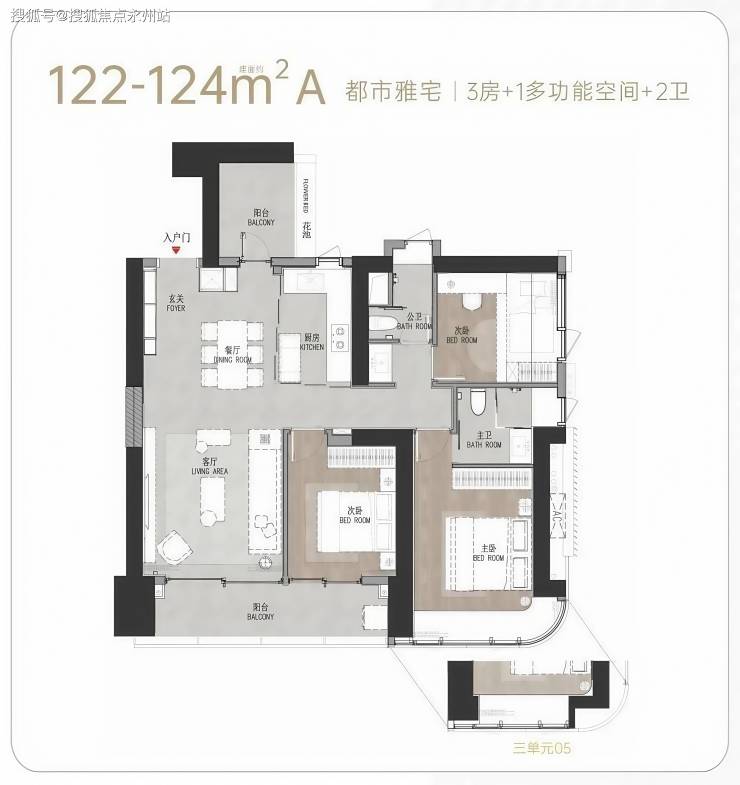 【主力户型】建面约111-125㎡(3房/3+1房)