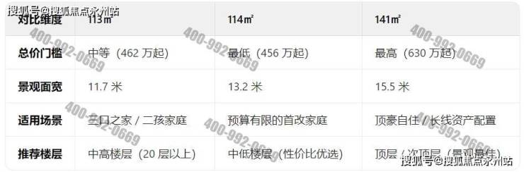 114平四房户型折后约456-516万,面积多了一个平方,总价最低,低楼层户型总价比113平01户型便宜了约45万,虽然不是南北通透,但几十万的价格差还是值得考虑的。