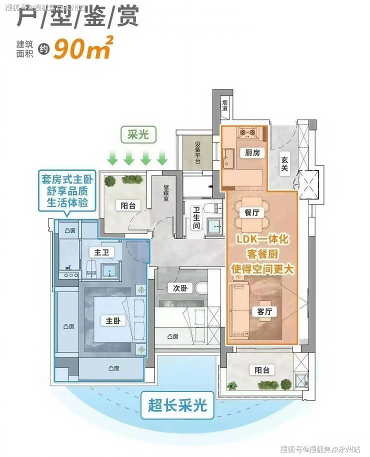 【产品面积段】90 - 95 - 105 - 143㎡(3 - 4 房)