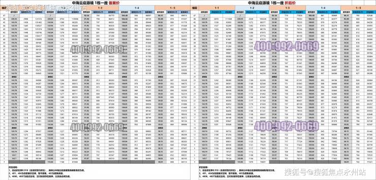 开盘推出9.18 折综合折扣,折后均价约8.46万/㎡,折后单价7.44-9.3万/㎡,总价700-1338万/套。具体户型价格如下: