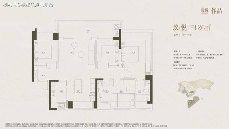 126㎡四房:折后单价4.74-5.5万/㎡,总价580-693万,为项目最低门槛户型,主打“大运二环价买一环核心”,性价比突出。