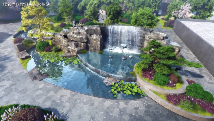四重水景:提取凤凰山的形态纹理将自然山林元素与现代都市生活有机结合,在有限的面积之中,还原无限的自然山水之趣。