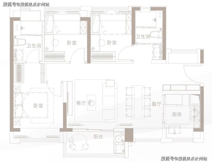 面积:79-85㎡3房1卫,91-95㎡3房 2卫,125㎡4房2卫