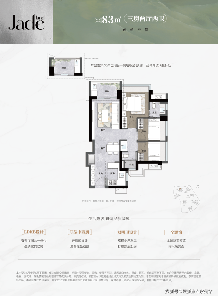 83㎡三房两卫户型在龙华区域内具有独特优势,是目前唯一 80 出头能做到三房两卫的户型。