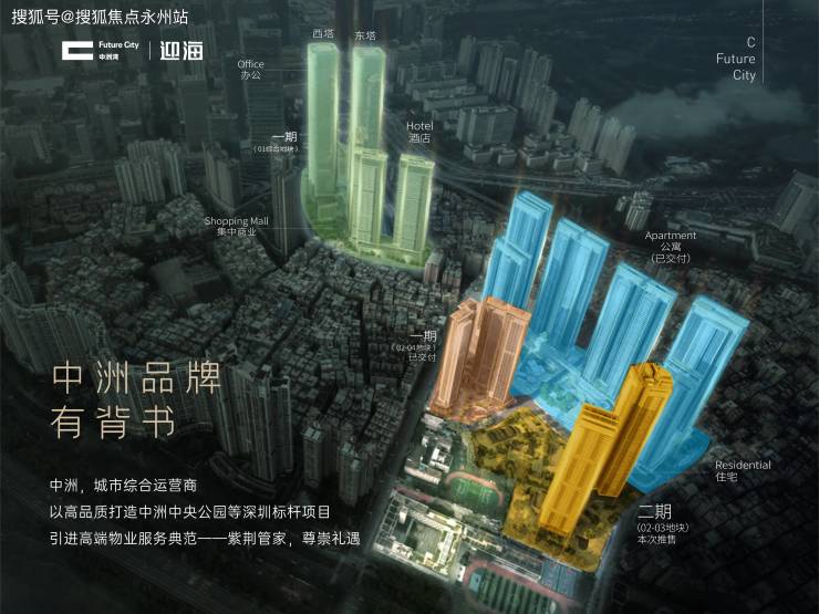 中洲滨海华府 (中洲湾)原为 上沙村城市更新单元, 总占地面积 9.7万㎡,总建面约 126万㎡,业态有 住宅、公寓、写字楼、酒店、商业 等,分为 四期 开发。
