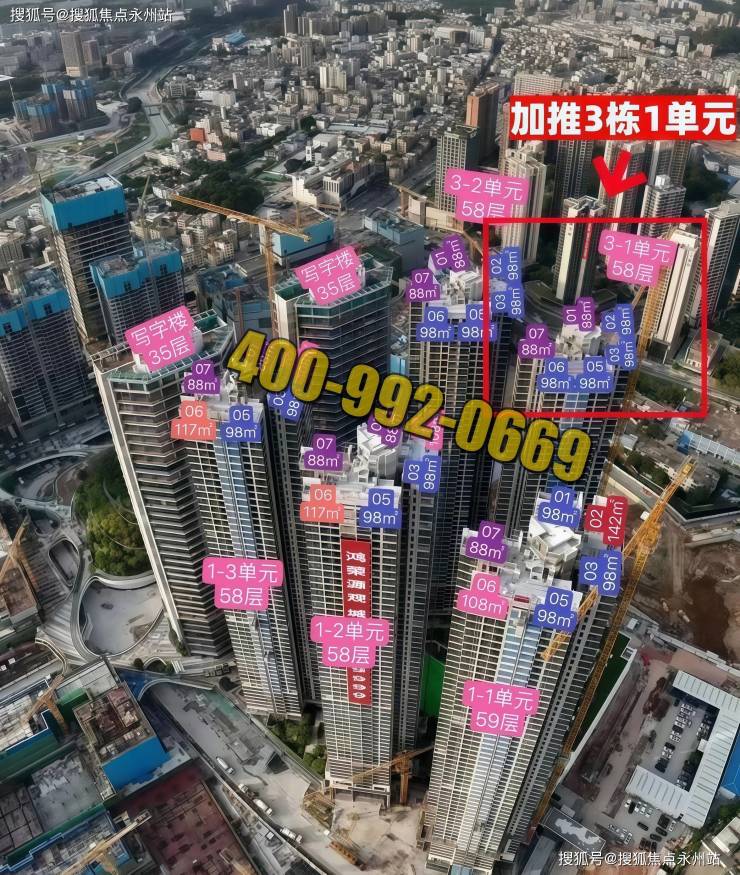 此次加推的1栋1单元,59F,4T6户,共318套,88-98㎡三房两卫,108-142㎡四房两卫,共318套房源,计划2026年12月精装交付。