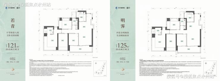 121/125㎡4房2厅2卫,约13米四开间,永久无遮挡公园景观,270度主卧飘窗,4个卧室空间足够大,折后均价约5.2万/㎡,最佳改善之选。