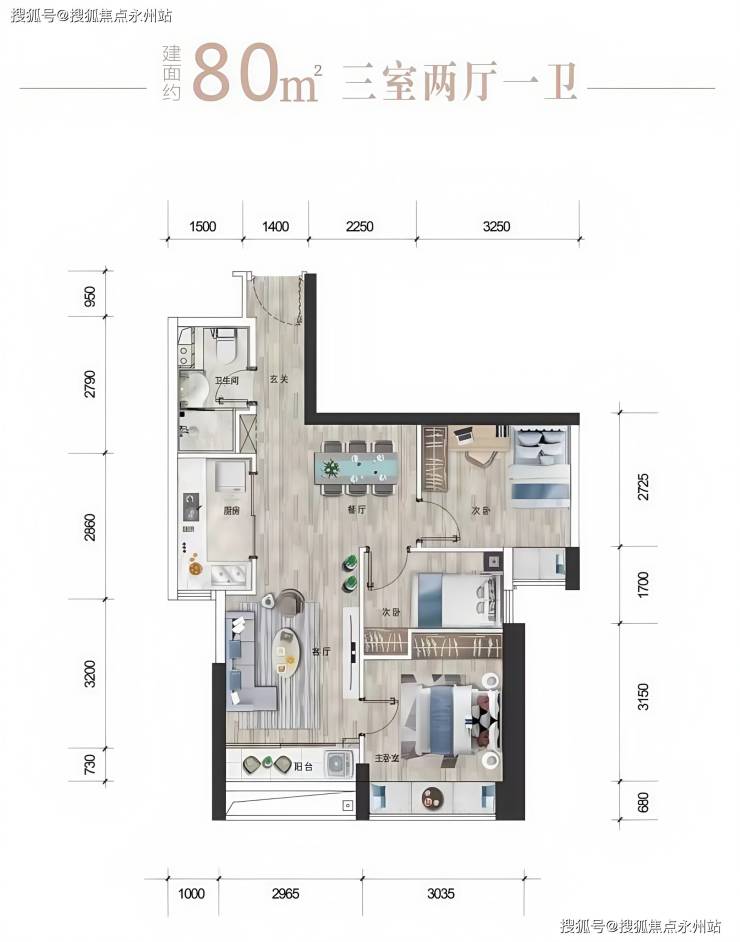 建面约 80㎡南北通两房:高性价比山海双景