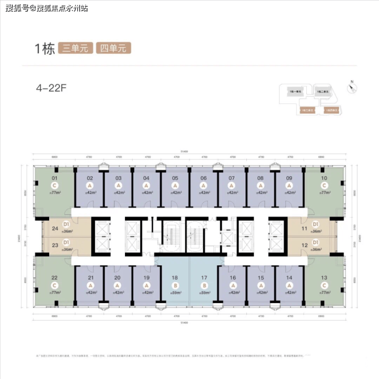 梯户比:公寓5梯24户 商办6梯20户 建筑类型:公寓商办