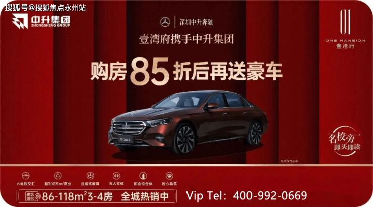 全场85折优惠,折后5.1-5.8万/㎡,总价447万起买3房,当初开盘才打了92折,现在力度继续加大,更惊喜的是,还送豪车奔驰(大概预估约30万),折现后约418万起买精装3房。Vip Tel:400-992-0669 中介勿扰