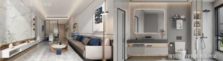 公区品质:楼栋大堂采用潘多拉奢石纹理岩板背景墙,内嵌隐藏式光源,搭配采光幕墙,营造高端会客场景;电梯轿厢采用镜面不锈钢材质,提升空间通透感。
