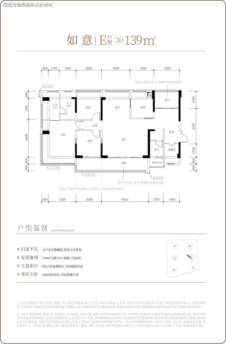 布局:方厅一体化设计,客厅连接 13.6㎡观景阳台,可改五房。