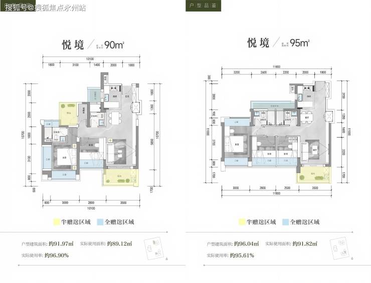 使用率:南山中心区稀缺的96%使用率,90㎡三房实际使用面积媲美传统110㎡户型,143㎡四房对标183㎡产品,赠送面积达20㎡,对比周边二手提高约8 - 10%使用率。