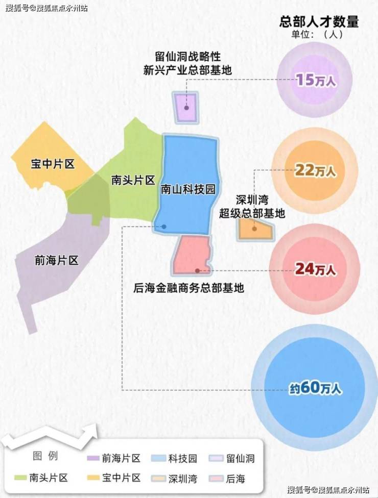 后海金融总部基地、深圳湾超级总部基地(东南向约6km):中国总部企业最为密集区域之一,规划就业人口约为54万人。
