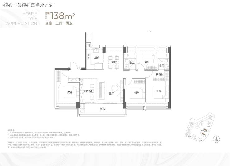 113㎡4房2卫-竖庭格局,西南向,基本居住功能与建面约108-110㎡4房2卫一致,但格局不一样,从目前公布的户型图上看,主要是主卧空间有了更大的提升,比如可以放更大一点的衣柜。