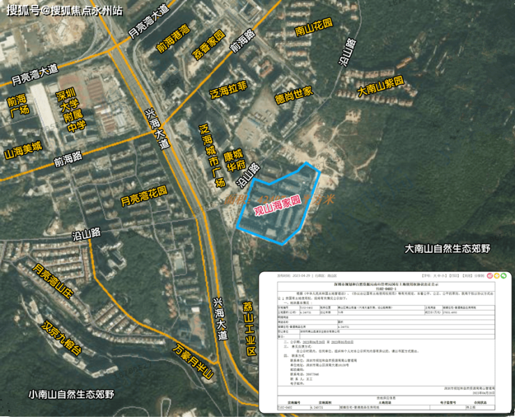 项目宗地号T102-0402,原为荔山工业区旧改单元,是荔源实业股份有限公司的征地返还用地,于2023年4月以协议出让方式获得,规划二类居住用地,产权年限为70年。(深圳前海妈湾远洋观山海售楼处电话:400-992-0669)