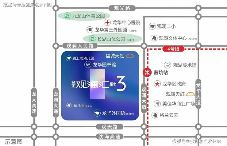 地理位置:龙华区福城街道观澜大道与云澜路交汇处西北侧,紧邻地铁4号线茜坑站D出口(地铁上盖物业)。