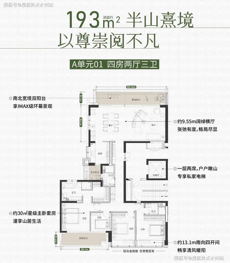 方直珑樾山主力120-268㎡三至五房,大户型层高3.6米,铝板玻璃幕墙外立面,清盘85折