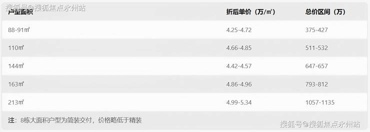 毛坯现房:88㎡三房单价约 3.5 万 /㎡,总价 308 万起;110㎡四房单价约 3.8 万 /㎡,总价 418 万起