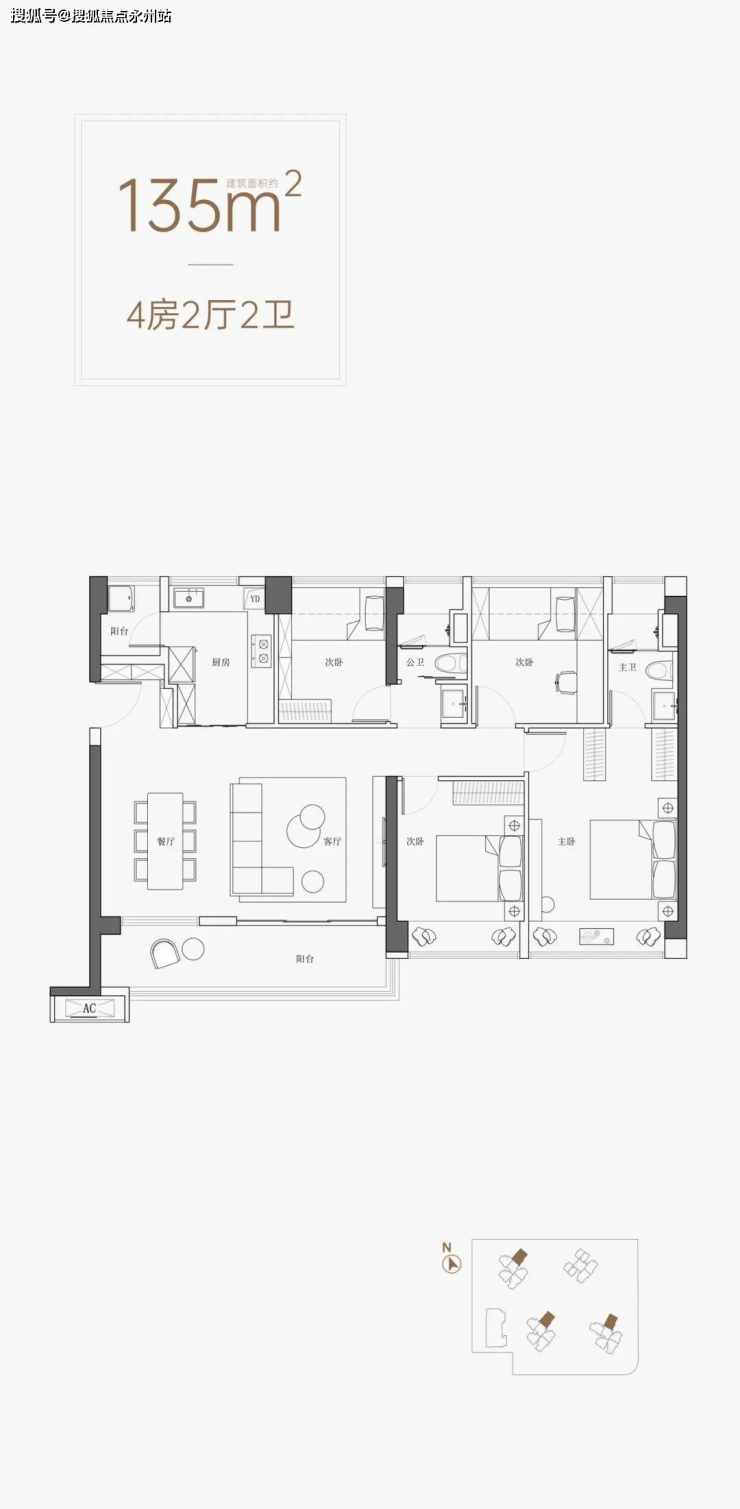 【135㎡四房两卫】东南朝向,方正、通透,横厅布局,客餐厅带超长阳台。