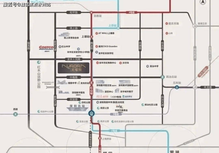 项目距离双地铁4&6号线交汇红山站约450米,一站抵达深圳北站,换乘5号线,2站直达香港西九龙。