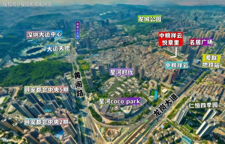 祥云悦章里,位于龙岗区龙城街道爱联社区如意路与余岭西路交汇处,地处大运新城+龙岗中心城双核心,项目所在的大运新城定位为“产学研一体化创新智核”,重点发展高新技术、先进制造与现代服务业,周边聚集天安数据城、硅谷新城、启迪协信科技园等三大产业基地。此外,龙岗中心城作为行政与文化中心,吸引企业总部及创新资源入驻,形成“双城驱动”的产业格局,为区域经济注入活力。