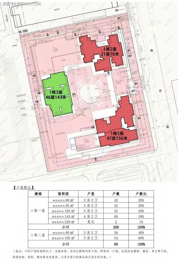 【小区建筑】共3栋,商品房2栋,保障房1栋推售产品】90-95-105-143㎡ 3-4房