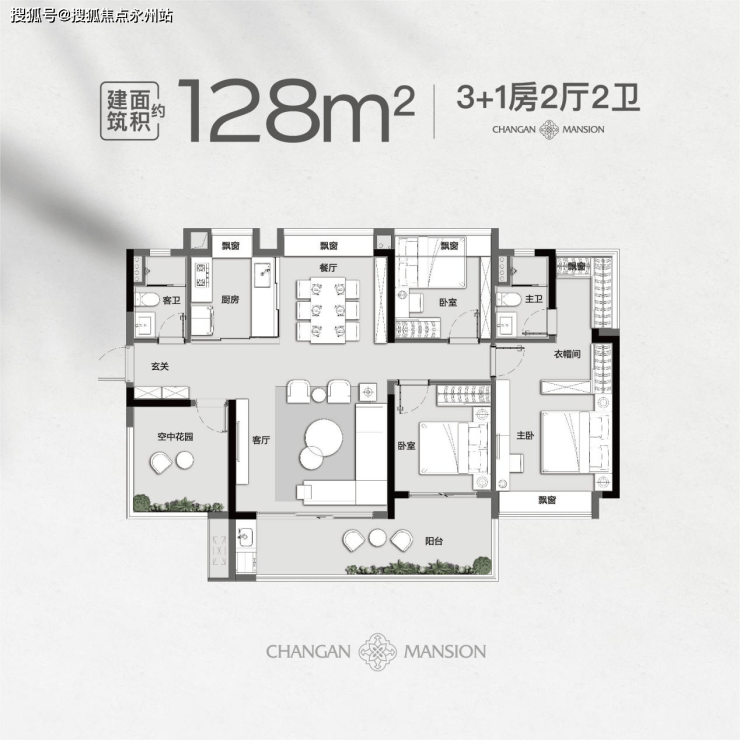 建面约128㎡的3+1房两厅两卫,实际居住体验甚至超过了市面上大多数140㎡的产品,可谓长安同量级项目市场中的王者。