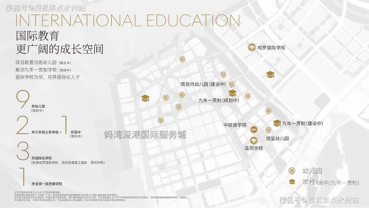 自带1所18班幼儿园,东南侧规划有1所九年制36班公办学校(待建),目前还没公布,大概率也是南二外集团校区,会跟紫荆府同步交付;另外在东南侧距离700米处有一所南山第二外国语学校创新学校妈湾校区,未来将为业主提供更多教育选择。