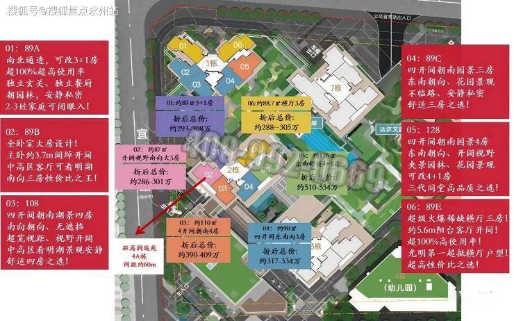 刚需家庭:优先考虑 89㎡高拓户型,总价可控且得房率超 100%,兼顾居住舒适度与教育资源。