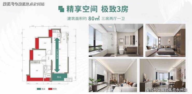 推售产品——主力户型为约80㎡三房一卫、约96㎡三房两卫、约107㎡四房两卫、约131㎡四房两卫