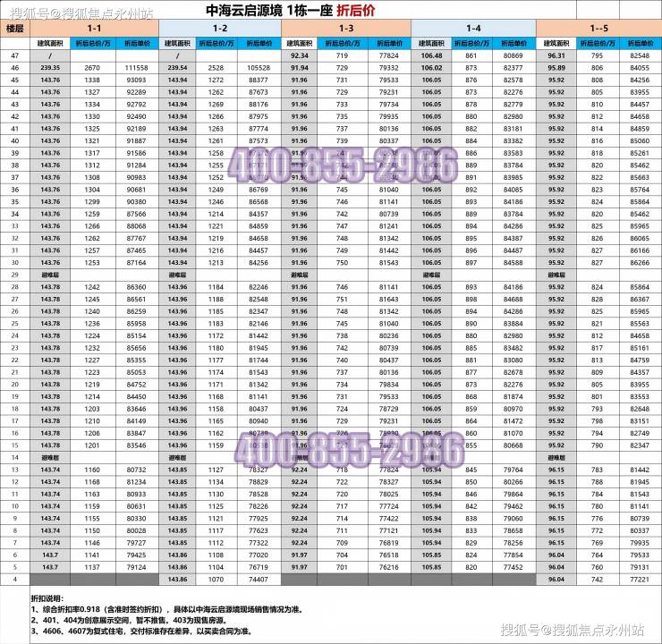 价格方面,首先说一下02,这个价格说真的有点香,总价折后1070万起步,单价才74,407,整体143平米就是越高越贵了,最高的次顶楼的价格是在1272万。