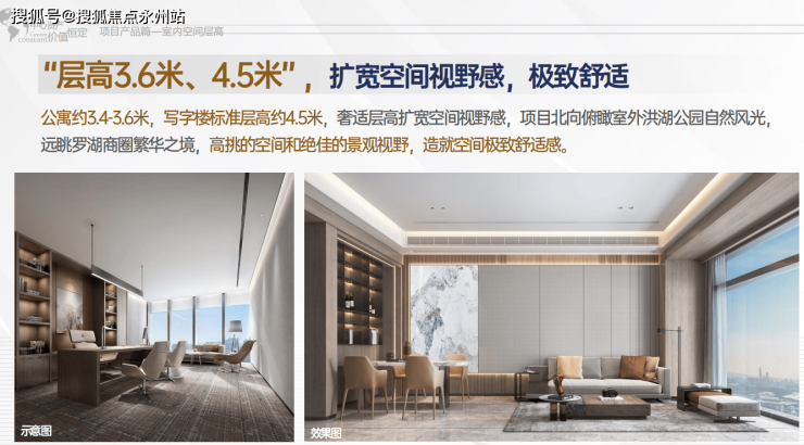 兆鑫深南上玺,打造约3.6米层高总裁公寓,比竞品品质满分住宅还高出50公分的奢阔灵感空间,满足顶豪人物对生活空间想象,延展更多装修灵感