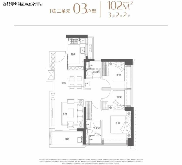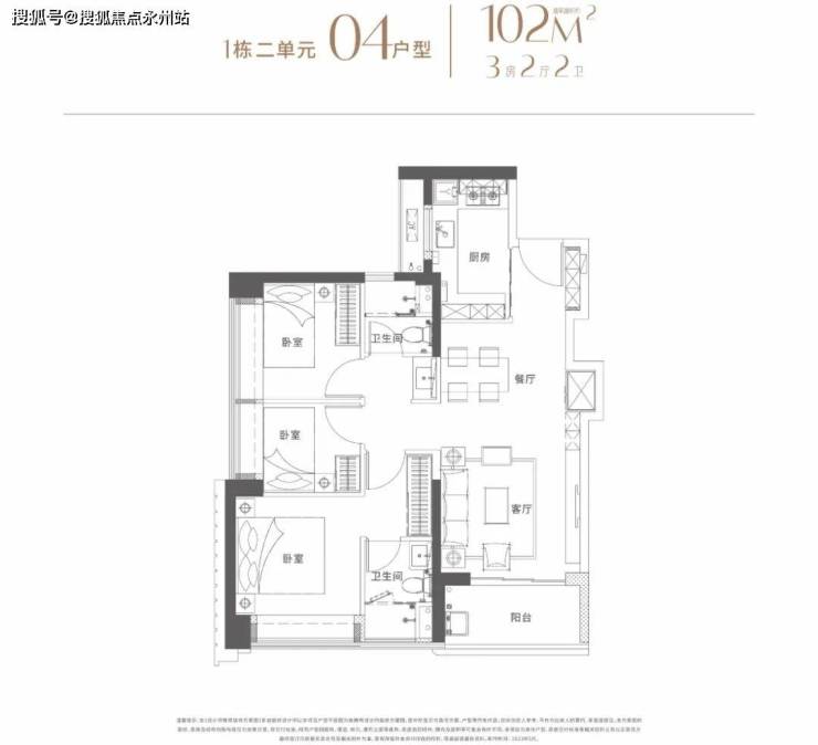 建面96-102平米:3房2厅2卫都是传统的竖厅,动静分区格局。