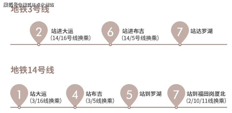 14号线:距离最近坳背站,5站罗湖、7站福田,换乘11号线,4站可达后海;