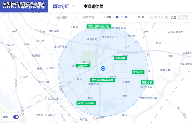 项目周边聚集华南实验学校、民治小学、育英小学、行知实验小学等学校。小区自带幼儿园,楼下(约20m)就是华南实验学校,公办九年一贯制,有53个班,现有2547名学生,2020年中考最高分586分,龙华排名第5,属于龙华名校区,车接车送不如目送,父母更放心。社区自带华南实验学校附属幼儿园。(深圳中海明德里售楼处电话:400-992-0669)