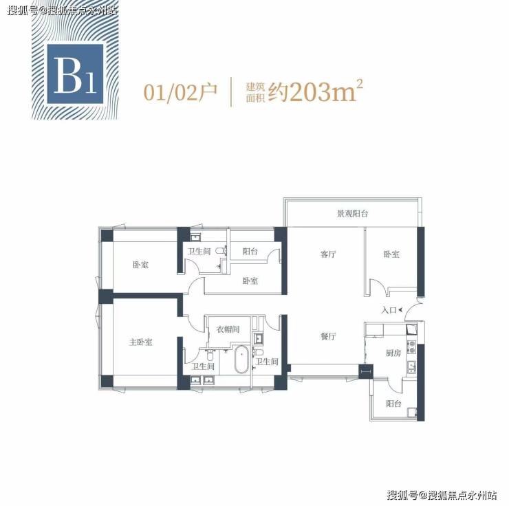 B1户型约203㎡3+1房两卫(1栋2单元01/02户型)