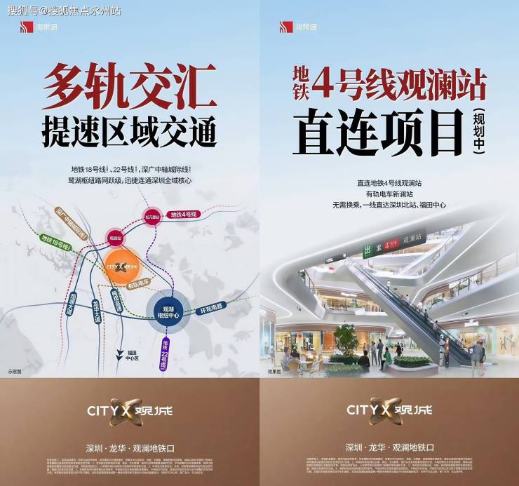 项目紧邻地铁4号线观澜站(步行约300-500 米),10站直达深圳北站,16站至福田CBD。(深圳龙华鸿荣源观城售楼处电话:400-992-0669)