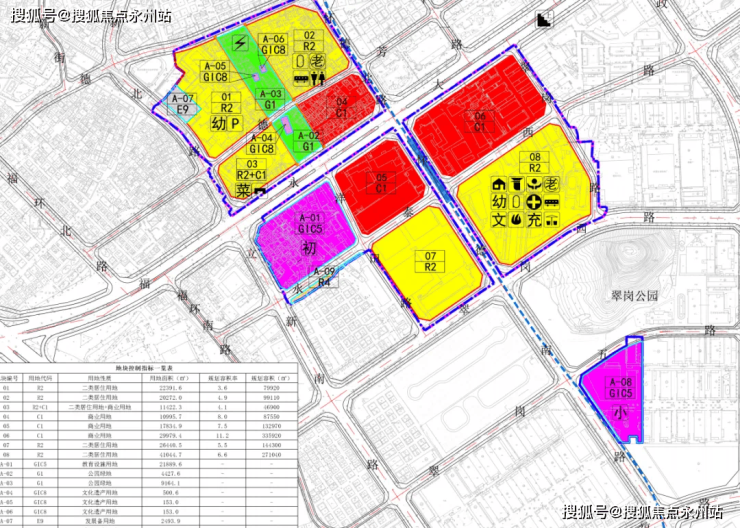 区域一(01~04地块、A-02~A-07等地块):包括一所4层12班幼儿园、12栋19~21层住宅楼、1栋8层住宅楼、1栋18层建筑(酒店+商业+公寓)、各类商业配套以及公园绿地、文化遗产用地等。(尚在规划阶段)