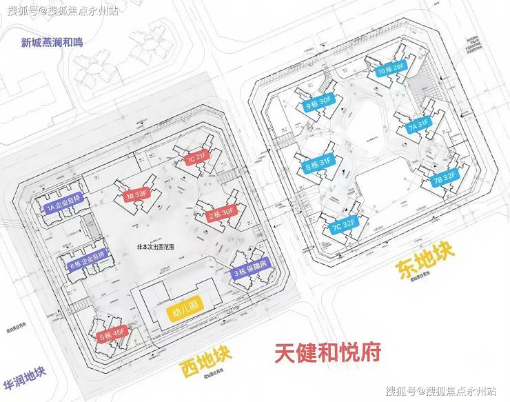 东地块,总占地面积约2.26万㎡,总建筑面积约14.43万㎡,计容建筑面积约10.37万㎡,容积率4.5,绿化率40%,共由6栋总高29-32层的住宅组成,其中7栋A单元住宅31F,7栋B/C单元住宅32F,8栋住宅31F,9栋住宅30F,10栋住宅29F,规划有公交首末站,社区菜市场,总规划1052户。