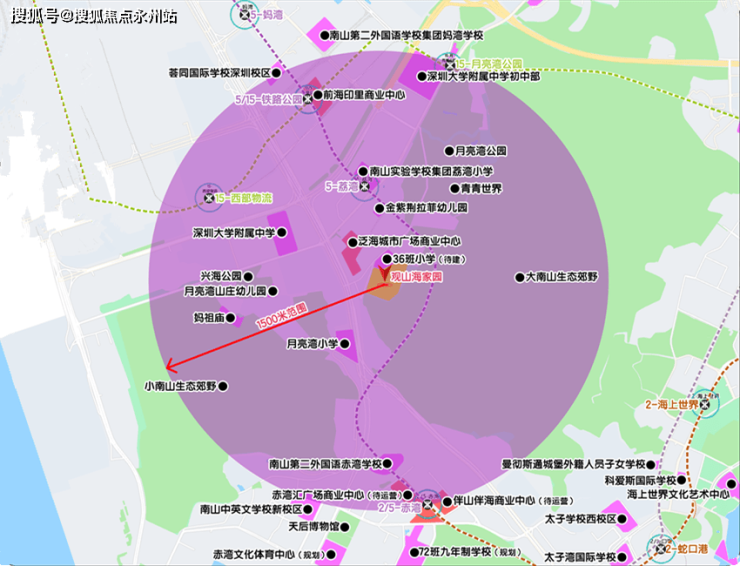 项目东北侧空地规划的是一所36班小学学校,根据南山区教育教育局2024年秋季招生学区划分,项目地块在南山实验集团学校荔湾小学和深圳大学附属中学初中部招生范围内,两所学校均在1.5公里范围内。