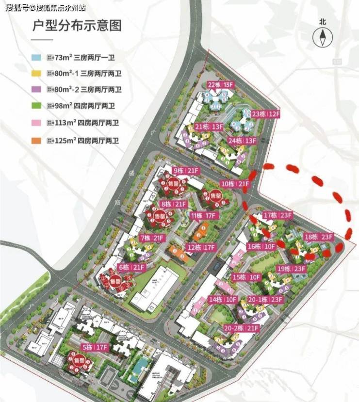目前的预计价格区间,73㎡的三房一卫的售价在465-520万之间,80-1西北东北视野无遮挡公园景的房型售价为528-620万,80-2东南公园景观房10楼以下的售价为528-600万,10楼以上为580-678万,98㎡的西南花园景的四房售价为720-810万。
