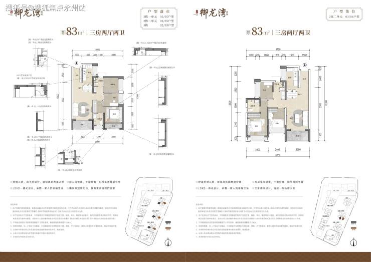 设计细节:65㎡户型采用双龙抱珠格局,三开间朝南;83㎡三房实现双卫分离,主卧套房设计;135㎡四房配备 270° 环幕阳台,可俯瞰园林与河景。