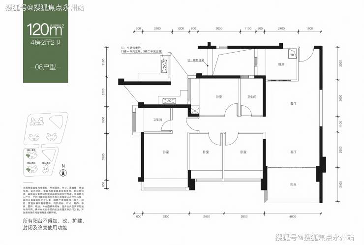 120㎡4房2卫:分别是3栋1单元和2单元的06户型。