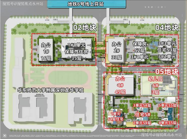 业态规划:总建面约55万㎡,包含4栋超高层住宅、3栋写字楼、1所12班幼儿园及九年制学校,打造TOD5.0 综合体。