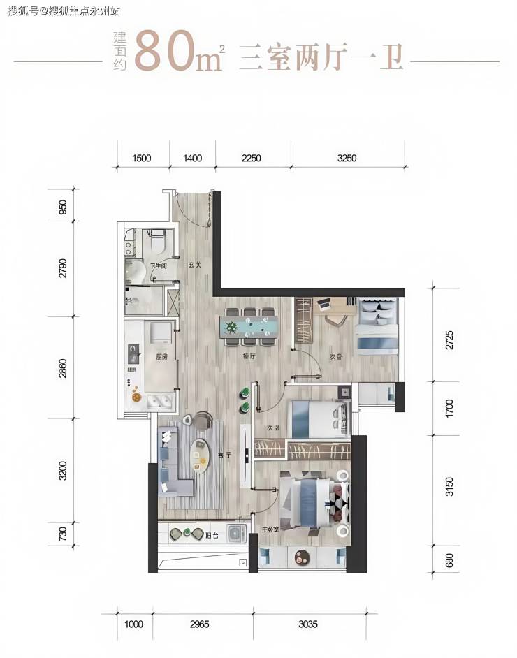80㎡两居室:折后单价3.5万-3.8万/㎡,总价约250万-305万,备案价为4.6万-5.2万/㎡,部分工抵房单价低至3.2万/㎡。