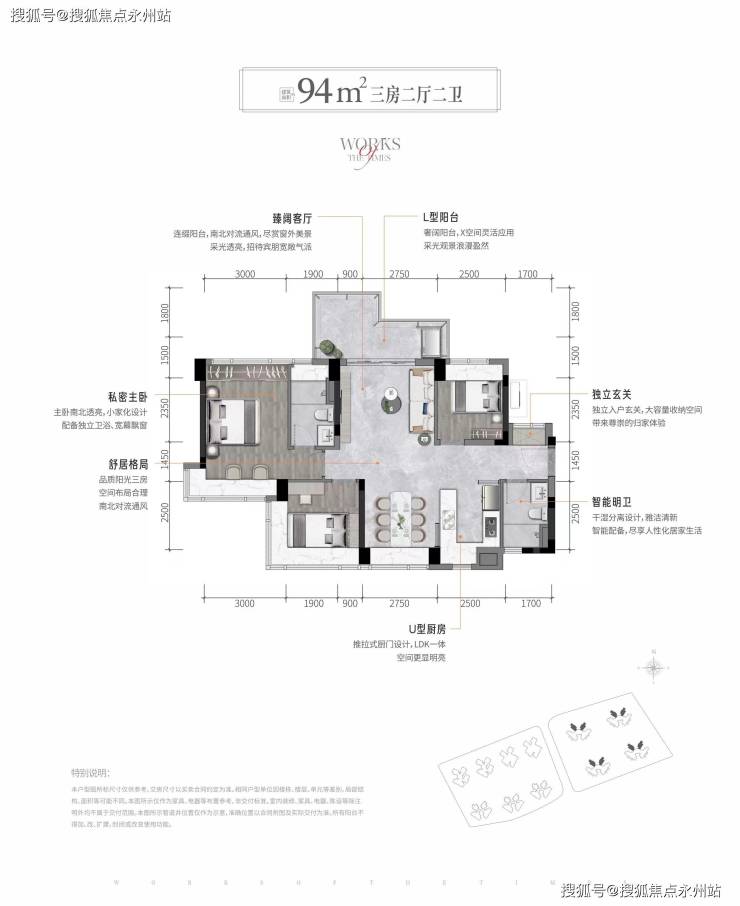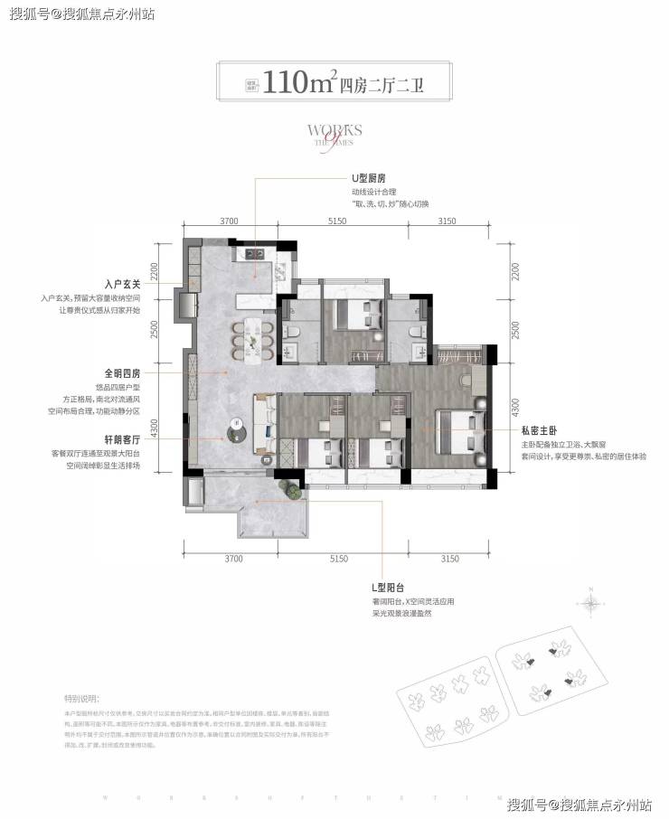卓越星奕府推售产品为建筑面积约85-110平3房-4房户型。