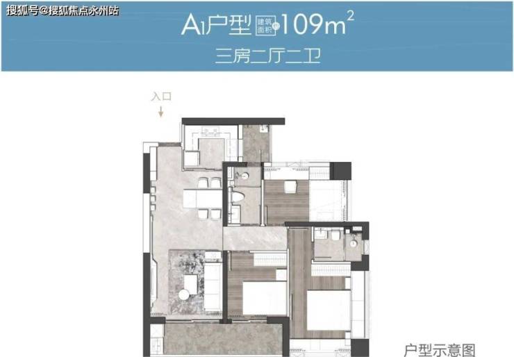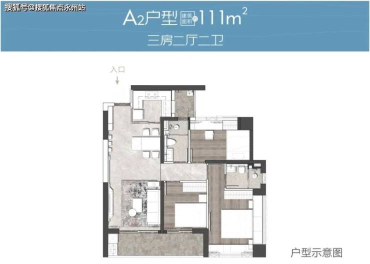 A户型 建筑面积约109-111㎡ 3房2厅2卫