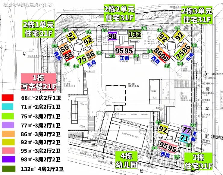 住宅部分:共4栋31层高住宅楼,分别为2栋的1、2、3单元和3栋住宅。