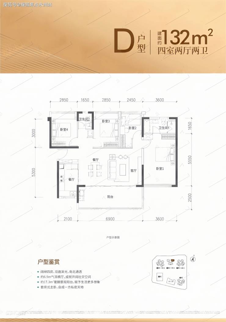 132㎡户型详解:4房2厅2卫